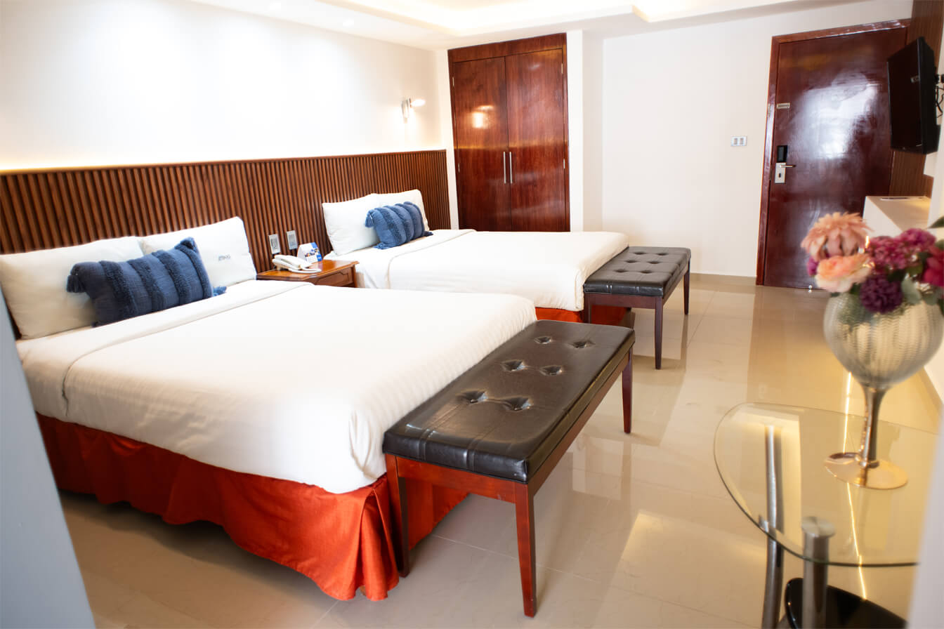 Nuestras habitaciones dobles Premium han sido completamente remodeladas para ofrecerte una experiencia superior: nuevo diseño, pisos modernos, muebles elegantes y un ambiente renovado en cada detalle.